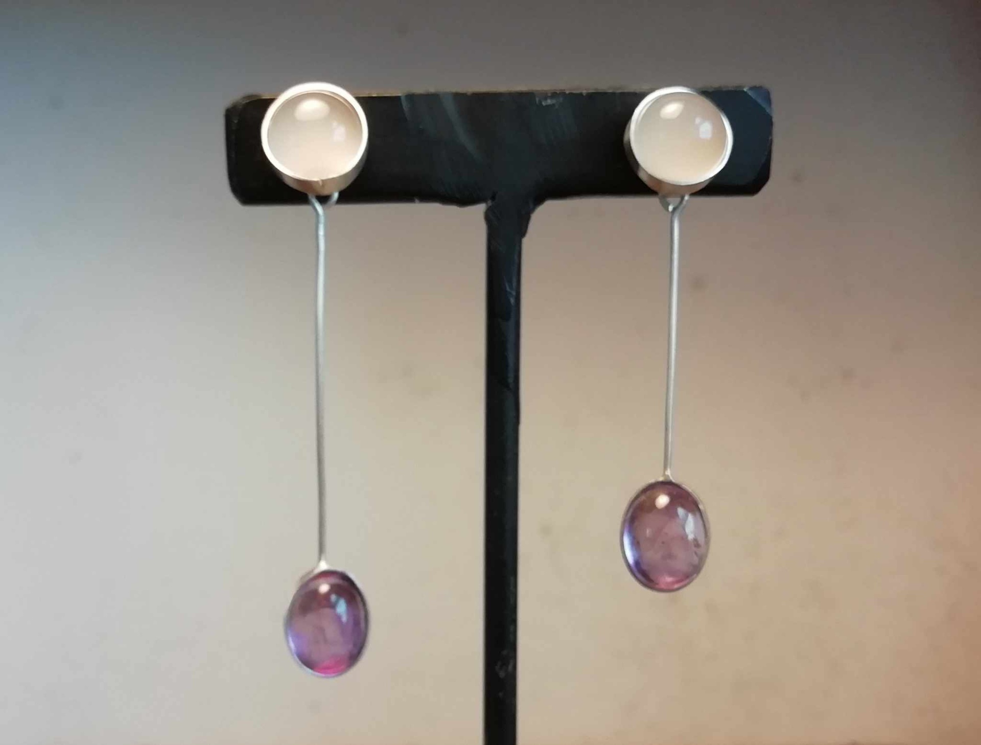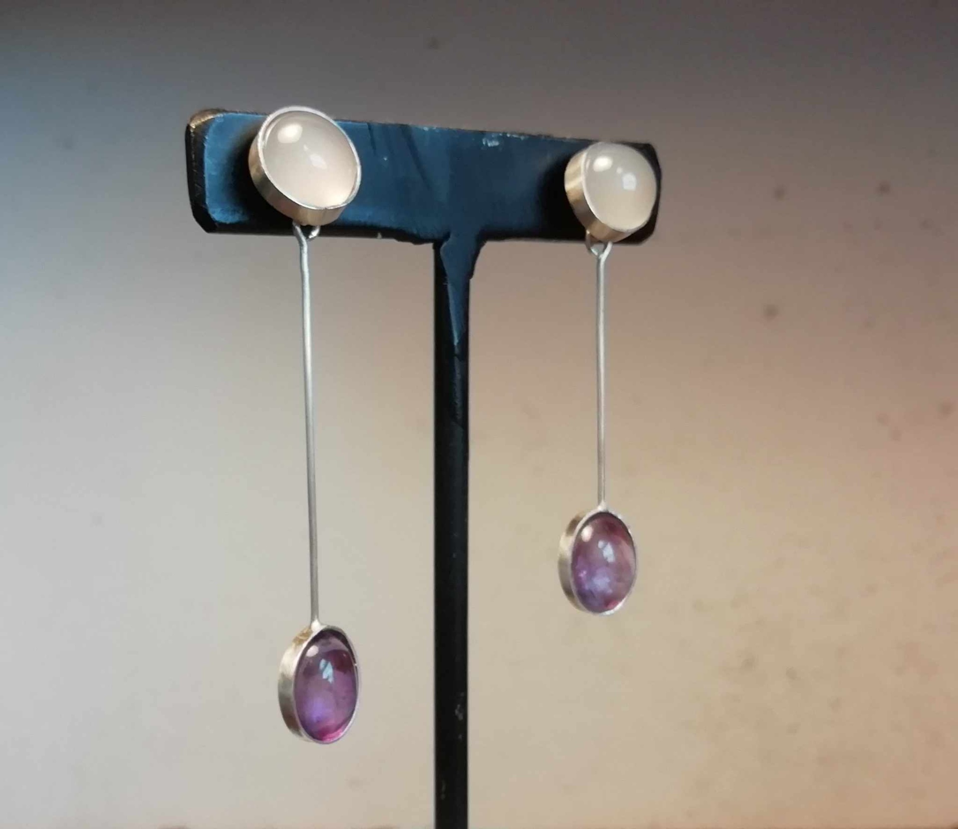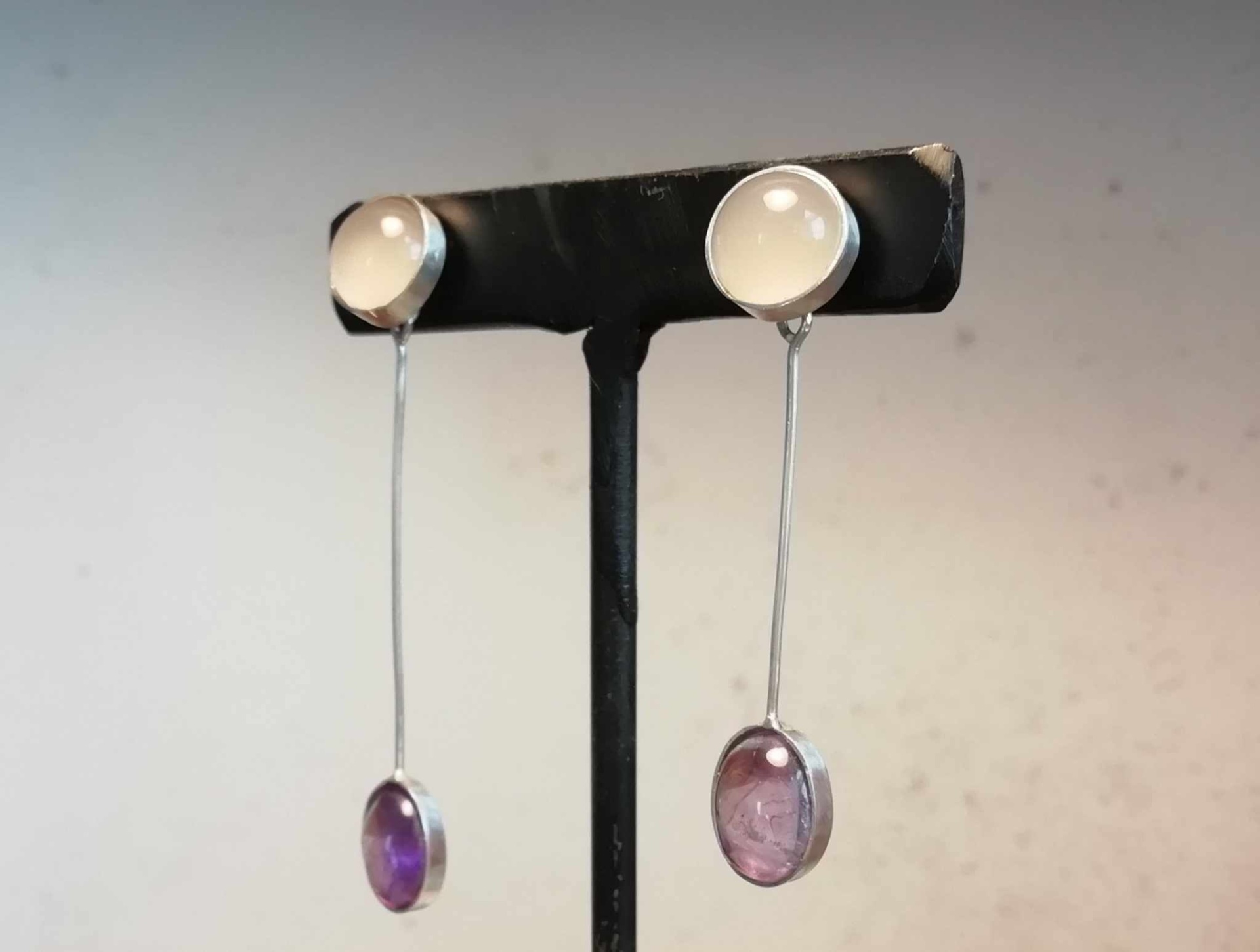Brincos assimétricos Calcedonia/Ametista 55,00 € Desconto de %. Partilhar O produto encontra-se sem stock. Brincos assimétricos em prata de lei com Calcedónia Rosa e Ametista Aconselhamos a manter os brincos em embalagem fechada quando não usados Brinco mais longo: 5,cmX3gr Brinco mais curto: 4cmX2,9gr