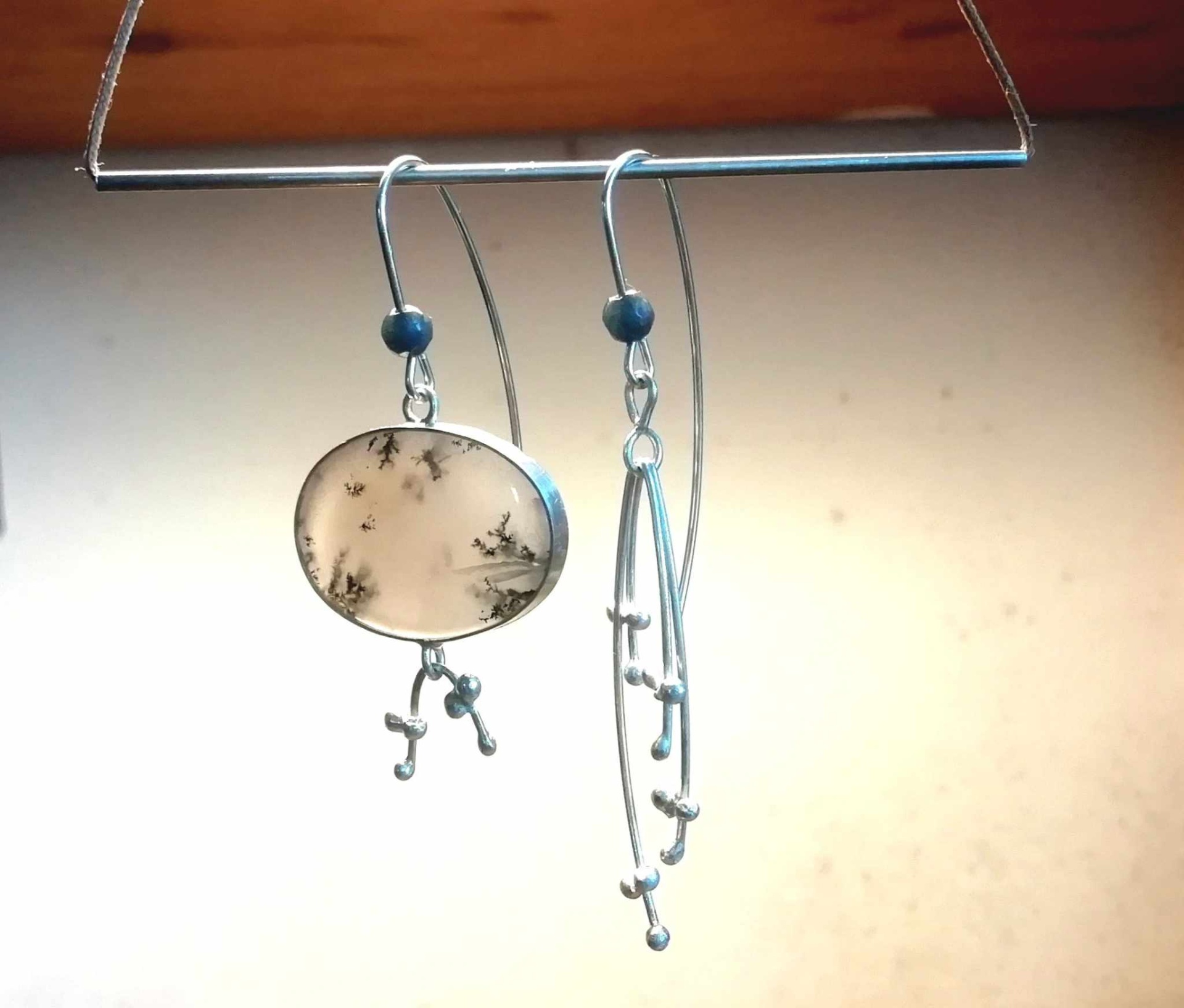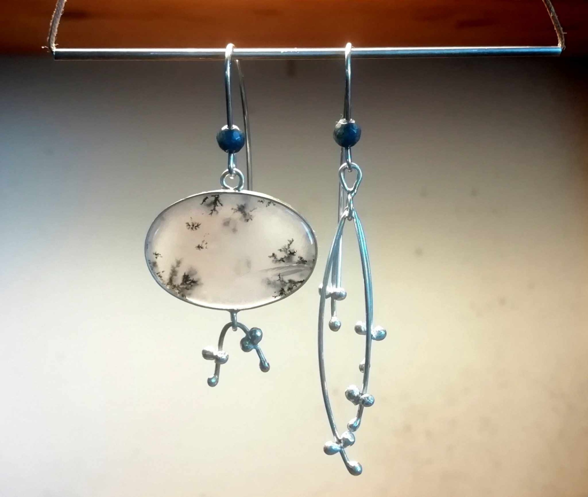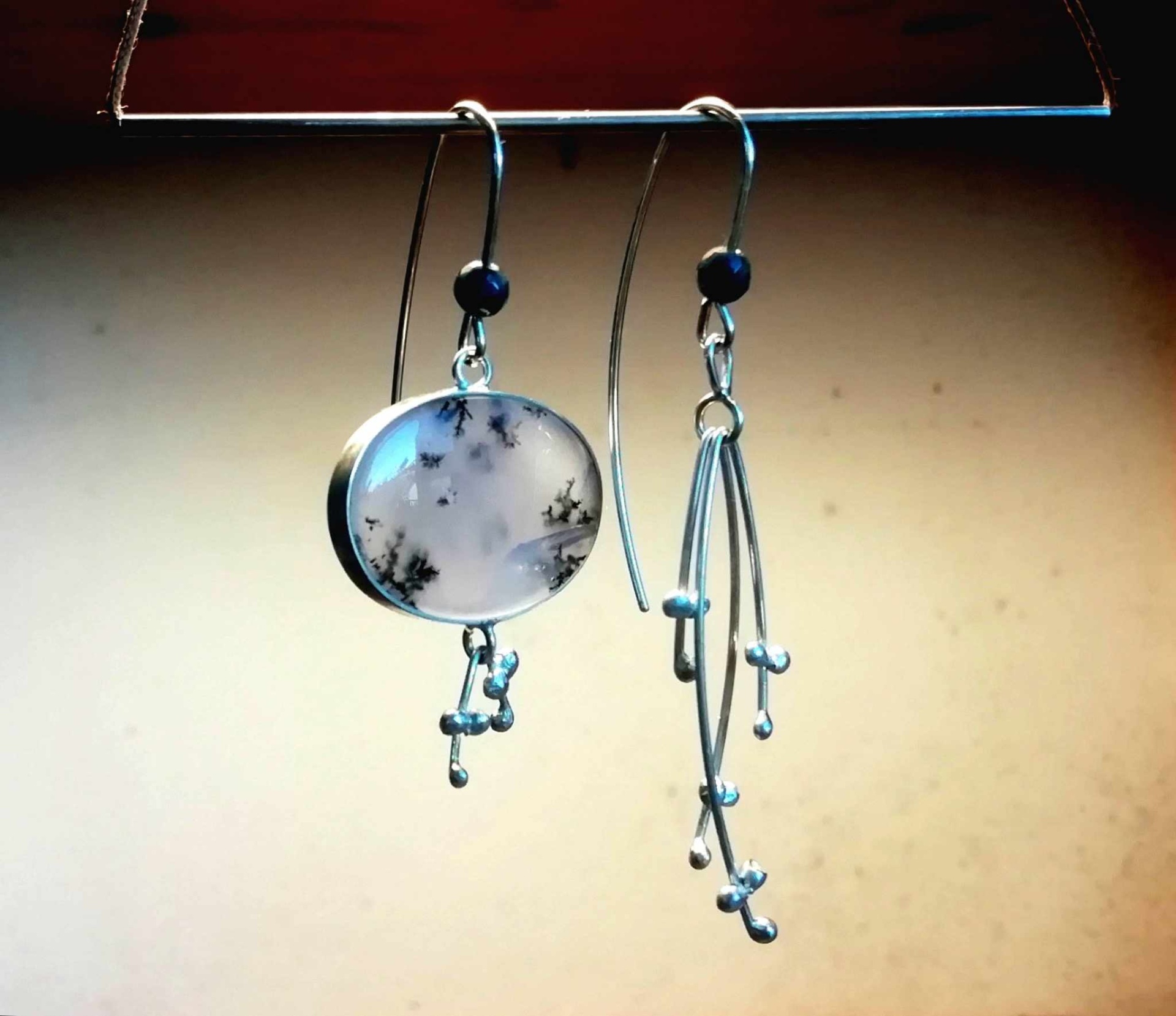 Brincos assimétricos Dendritica/Marinho 46,00 € Desconto de %. Partilhar O produto encontra-se sem stock. Brincos em prata de lei com Pedra natural, Ágata Dendritica Aconselhamos a manter os brincos em embalagem fechada quando não usados Brinco com Pedra: 5cm - 4,7gr Brinco sem Pedra: 6,5cm - 1,8gr
