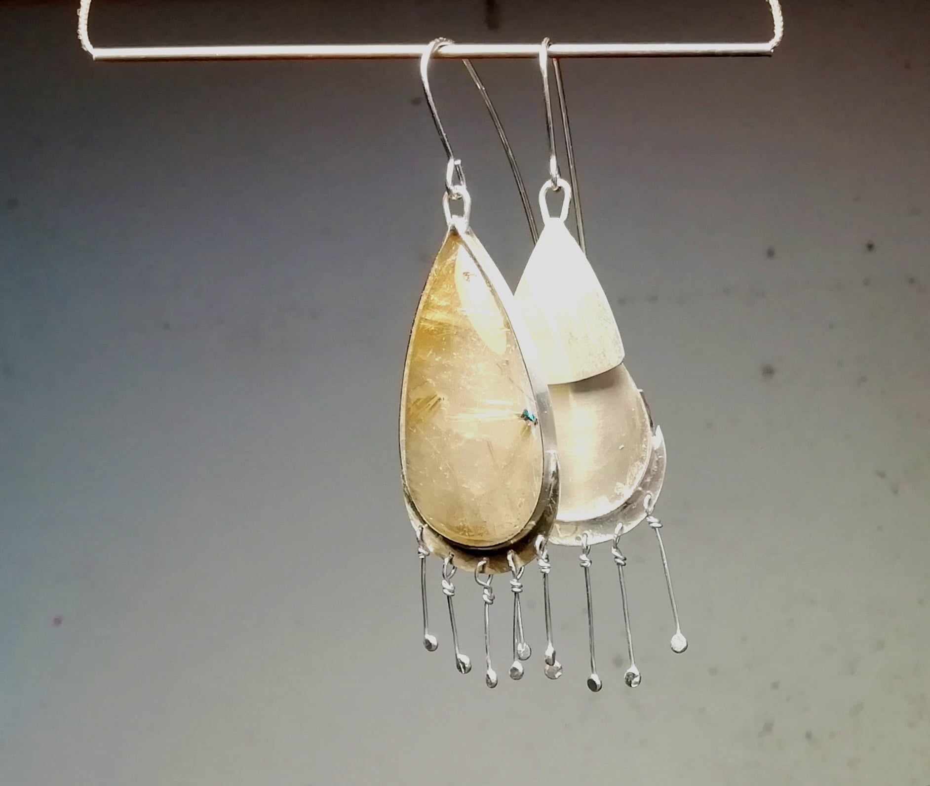 Brincos assimétricos Quartzo rutilado Chuva 60,00 € Desconto de %. Partilhar O produto encontra-se sem stock. Brincos assimétricos em prata de lei com Quartzo rutilado em forma de gota Aconselhamos a manter os brincos em embalagem fechada quando não usados Comprimento: 7,5cm Peso brinco c/pedra: 9,2gr Peso brinco só prata: 3,2gr Tags assimétricorutilado