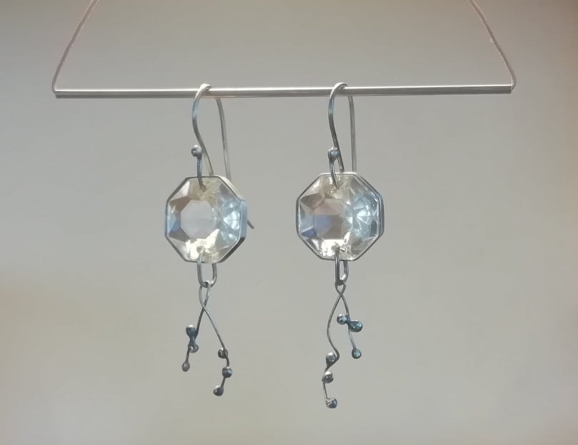 Brincos Cristal c/Bagas 45,00 € Desconto de %. Partilhar Comprar Contactar SKU: CLBP132 Brincos em prata de lei com Vidro Cristal Todos os modelos são feitos manualmente nenhum par é exactamente igual O par enviado pode ser ligeiramente diferente da imagem Aconselhamos a manter os brincos em embalagem fechada quando não usados Comprimento: 5cm Peso p/brinco:3gr Tags Cristal