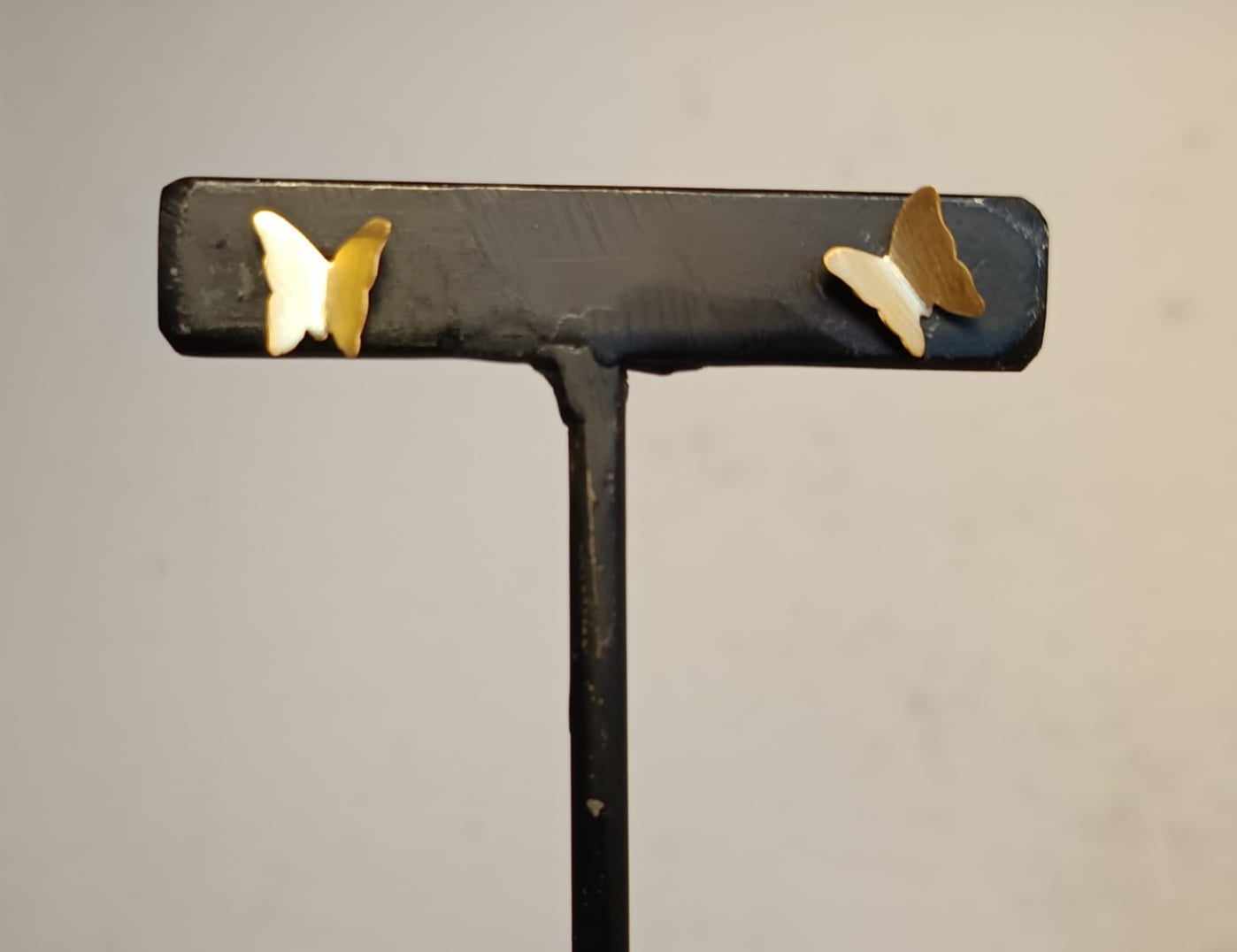 Brincos mínimo Borboleta 35,00 € Desconto de %. Partilhar Cor Prata Banho ouro Comprar Contactar SKU: CLBR09 Brincos em prata de lei Forma borboleta Opção com banho de ouro Todos os modelos são feitos manualmente, nenhum par é exactamente igual O par enviado pode ser ligeiramente diferente da imagem Aconselhamos a manter os brincos em embalagem fechada quando não usados Comprimento: 1cm Peso por brinco: 0,4gr