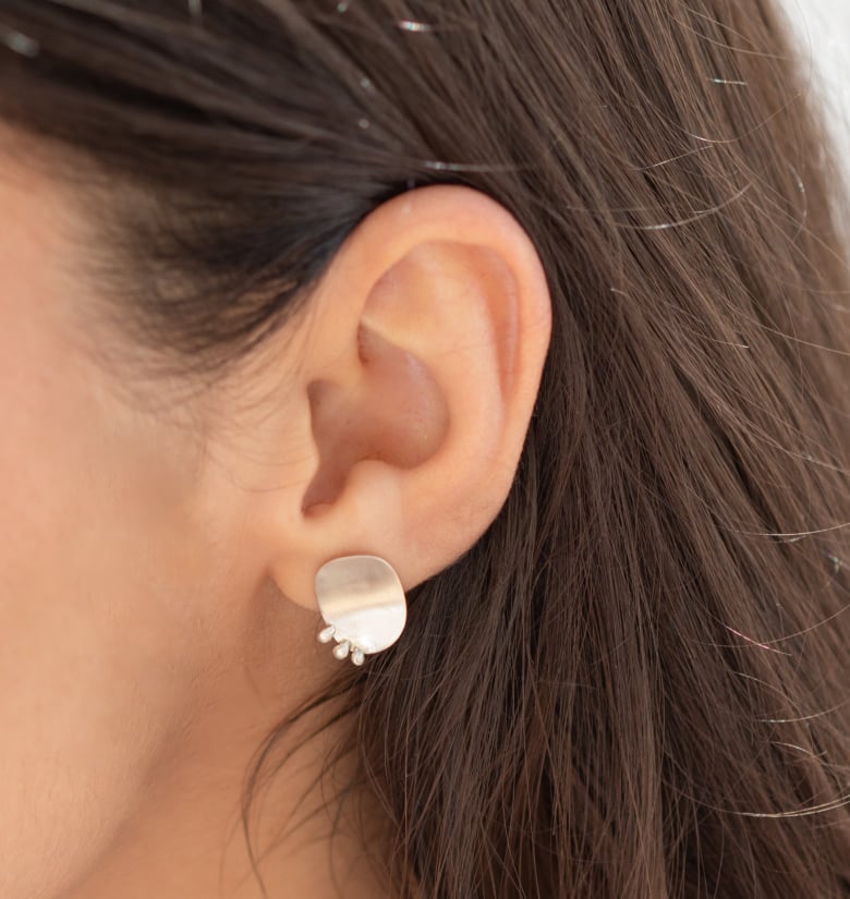 Brincos ovais 3 pontos 40,00 € Desconto de %. Partilhar Comprar Contactar SKU: CLBR04 Brincos em prata de lei. Brincos em forma oval com pequenos pontos assimétricos Todos os modelos são feitos manualmente, o par enviado pode não ser exactamente igual ao da imagem Aconselhamos a manter os brincos em embalagem fechada quando não usados Comprimentos: 1,5cm Peso par: 1,7gr