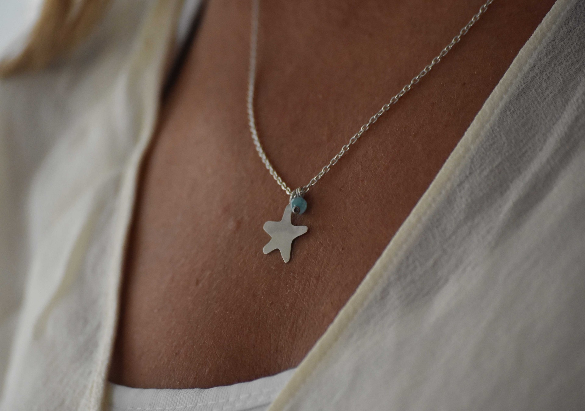 Colar simples estrela 45,00 € Desconto de %. Partilhar Comprar Contactar SKU: CLCL02 Malha em prata de lei Figura estrela em prata e àgata de cor Todos os modelos são feitos manualmente o par enviado pode não ser exactamente igual ao da imagem Comprimento fio: 45cm Peso: 1,5gr