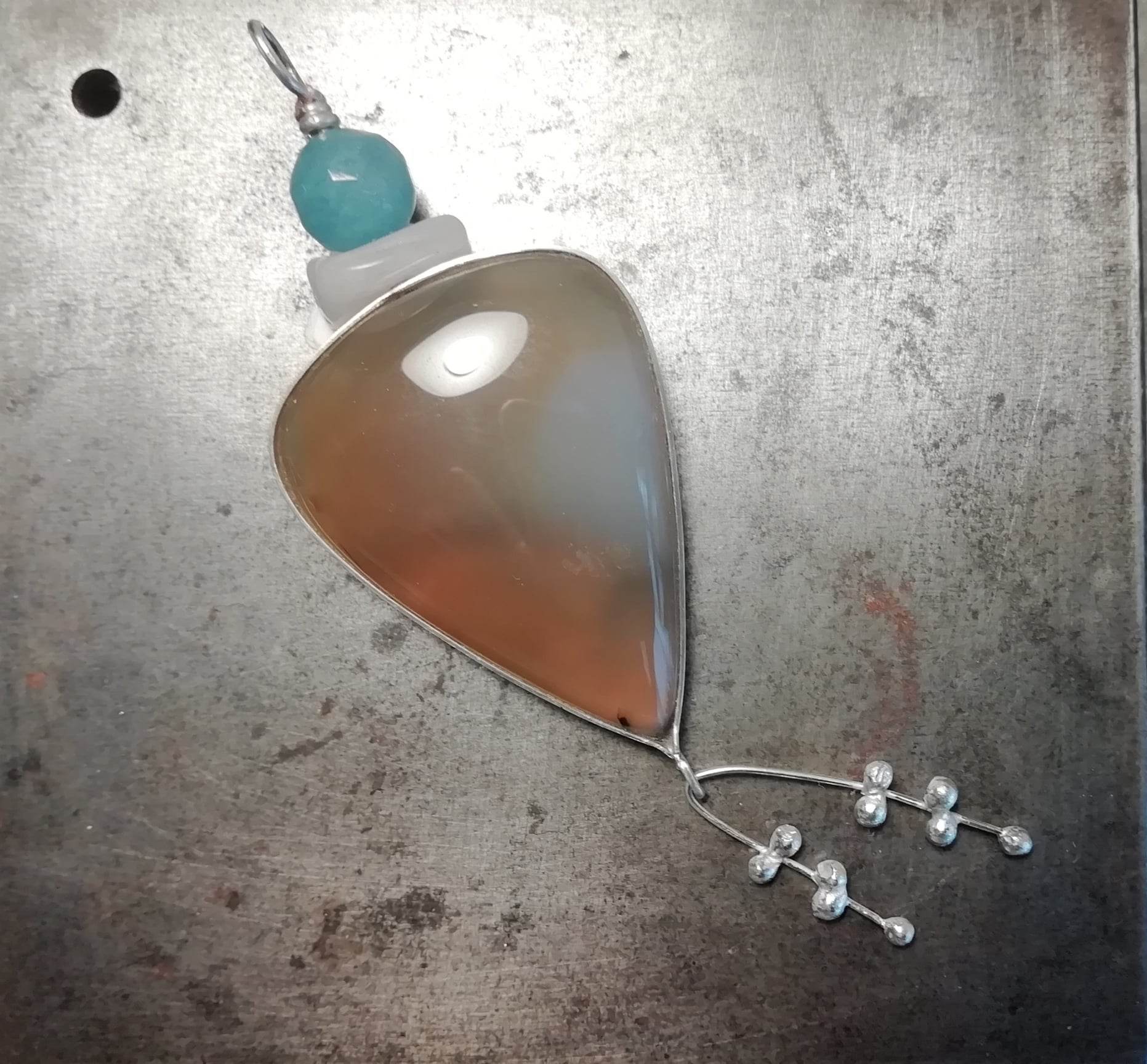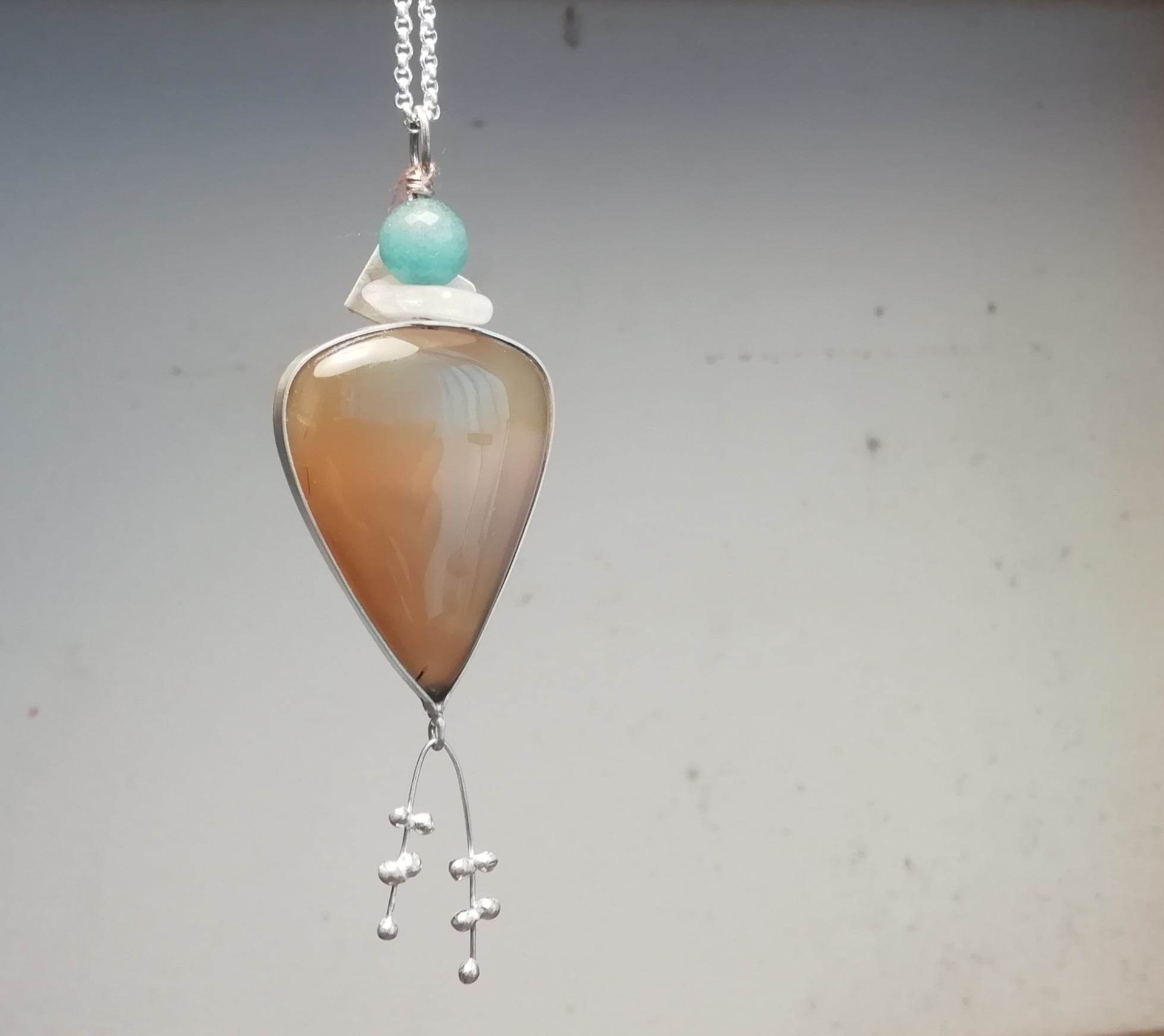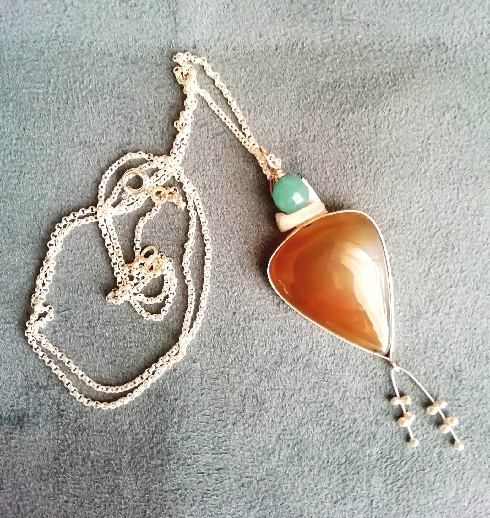 Cordão com pendente Agata Natural c/Turquesa 70,00 € Desconto de %. Partilhar Conjunto Com cordão Só pendente Comprar Contactar 1 unidades em stock | SKU: CLPD08 Cordão em prata de lei Pendente em prata com Agata natural e Turquesa Poderá ser adquirido o conjunto Cordão+Pendente Poderá ser adquirido apenas o Pendente Aconselhamos em manter em embalagem fechada quando não usado Cordão: 5,7gr - 70cm Pendente: 10,3gr - 7,5cm