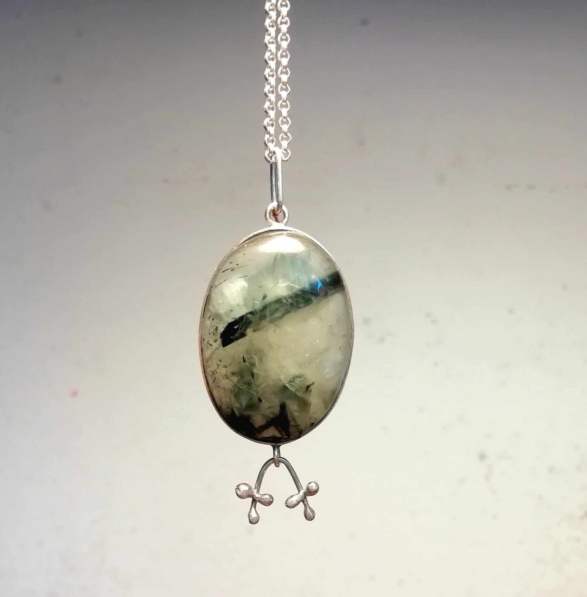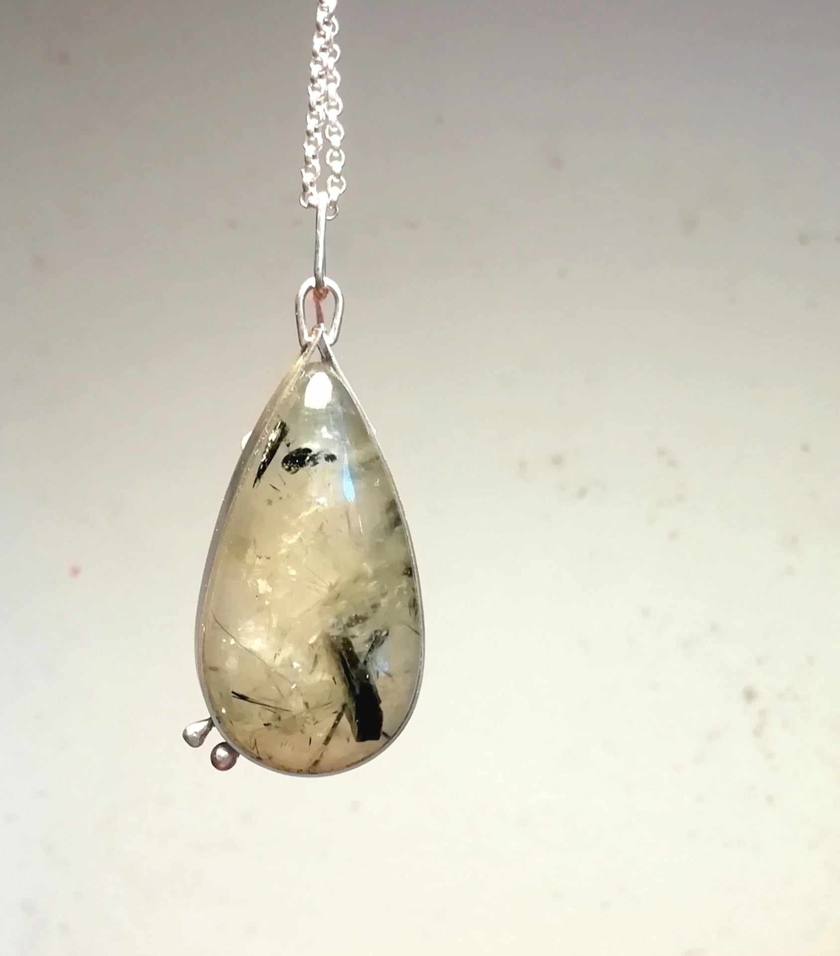 Cordão com pendente Prehnite 75,00 € Desconto de %. Partilhar Forma Gota Oval Comprar Contactar 1 unidades em stock | SKU: CLPD03 Cordão em prata de lei Pendente em prata e pedras naturais, Prehnite Poderá ser adquirido o pendente com forma oval ou gota Aconselhamos em manter em embalagem fechada quando não usado Cordão: 5,7gr - 70cm Pendente Gota:4,5cm - 11,5gr Pendente Oval:4,5cm - 9,4gr