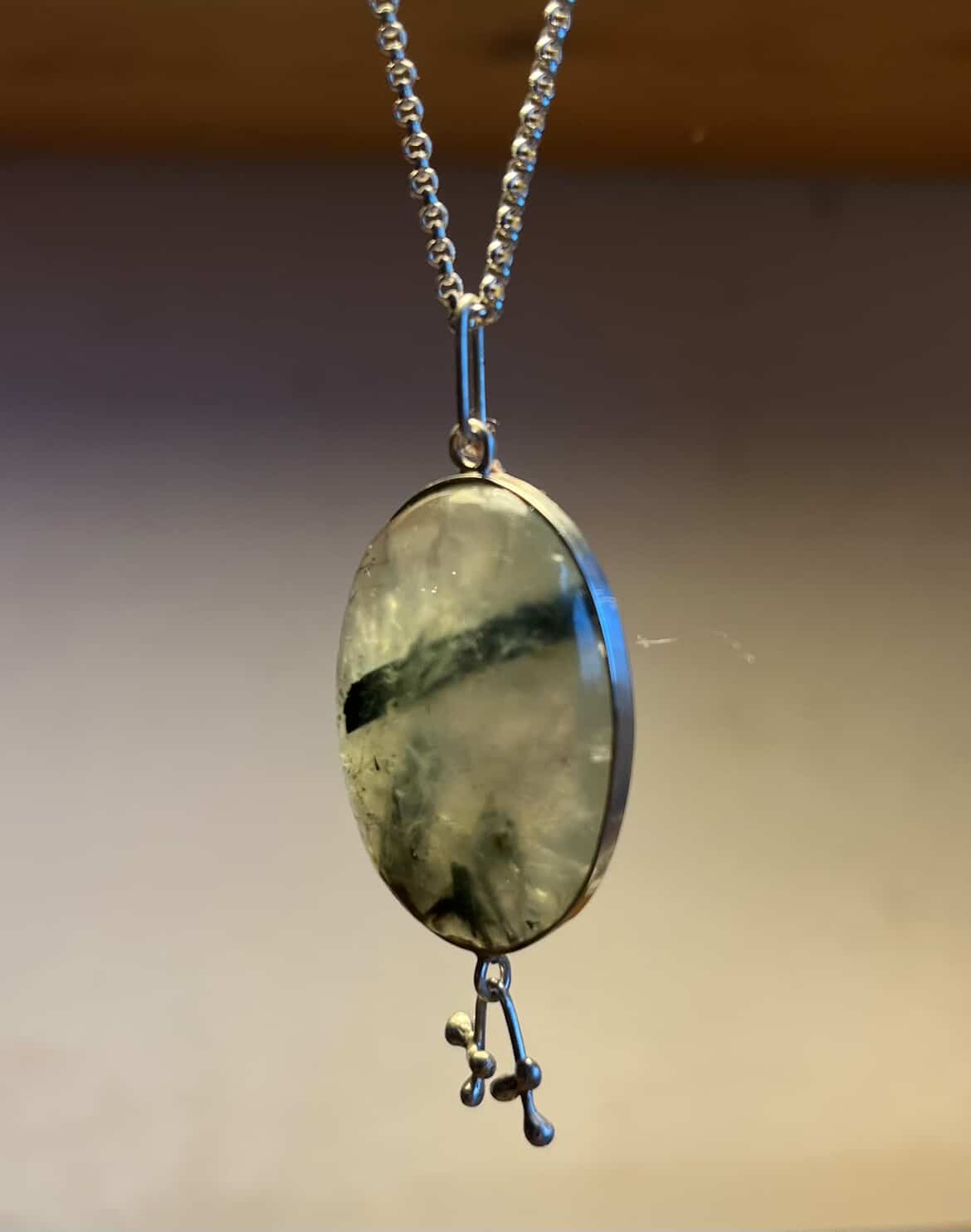 Cordão com pendente Prehnite Oval 75,00 € Desconto de %. Partilhar Comprar Contactar 1 unidades em stock Cordão em prata de lei Pendente em prata com Quartzo Prehnite Aconselhamos a manter em embalagem fechada quando não usado Cordão: 5,7gr - 70cm Pendente: